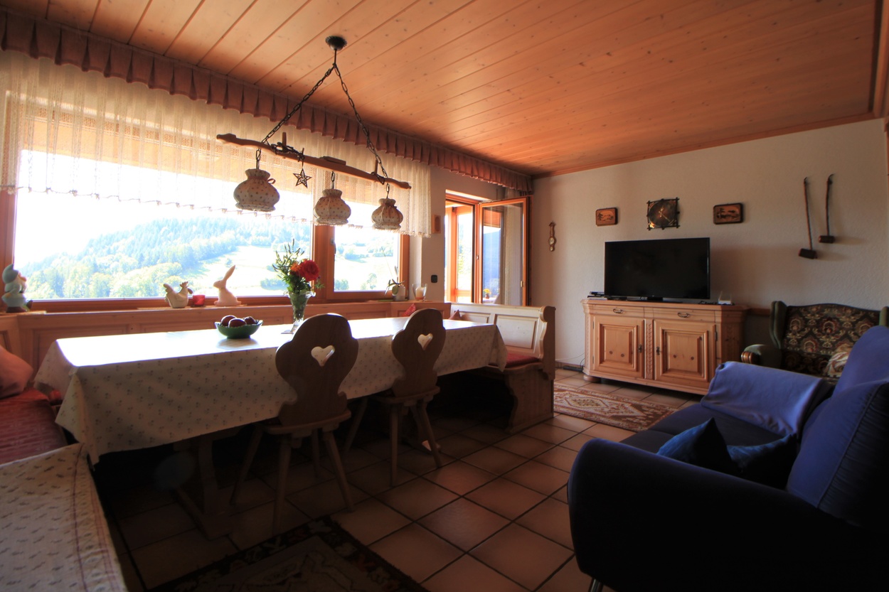 Komfortable, gemütlich eingerichtete Ferienwohnung im Schwarzwaldstil für 2-4 Pers. Großes Wohnzimmer mit beheizbarer Ofenbank und integrierter Küchenzeile mit Geschirrspühlmaschiene und Mikrowelle. Zwei Doppelschlafzimmer, Du/WC, TV, WLAN, separater Eingang. Südhanglage mit Panoramablick, überdachter, windgeschützter Freisitz mit Grillmöglichkeit.