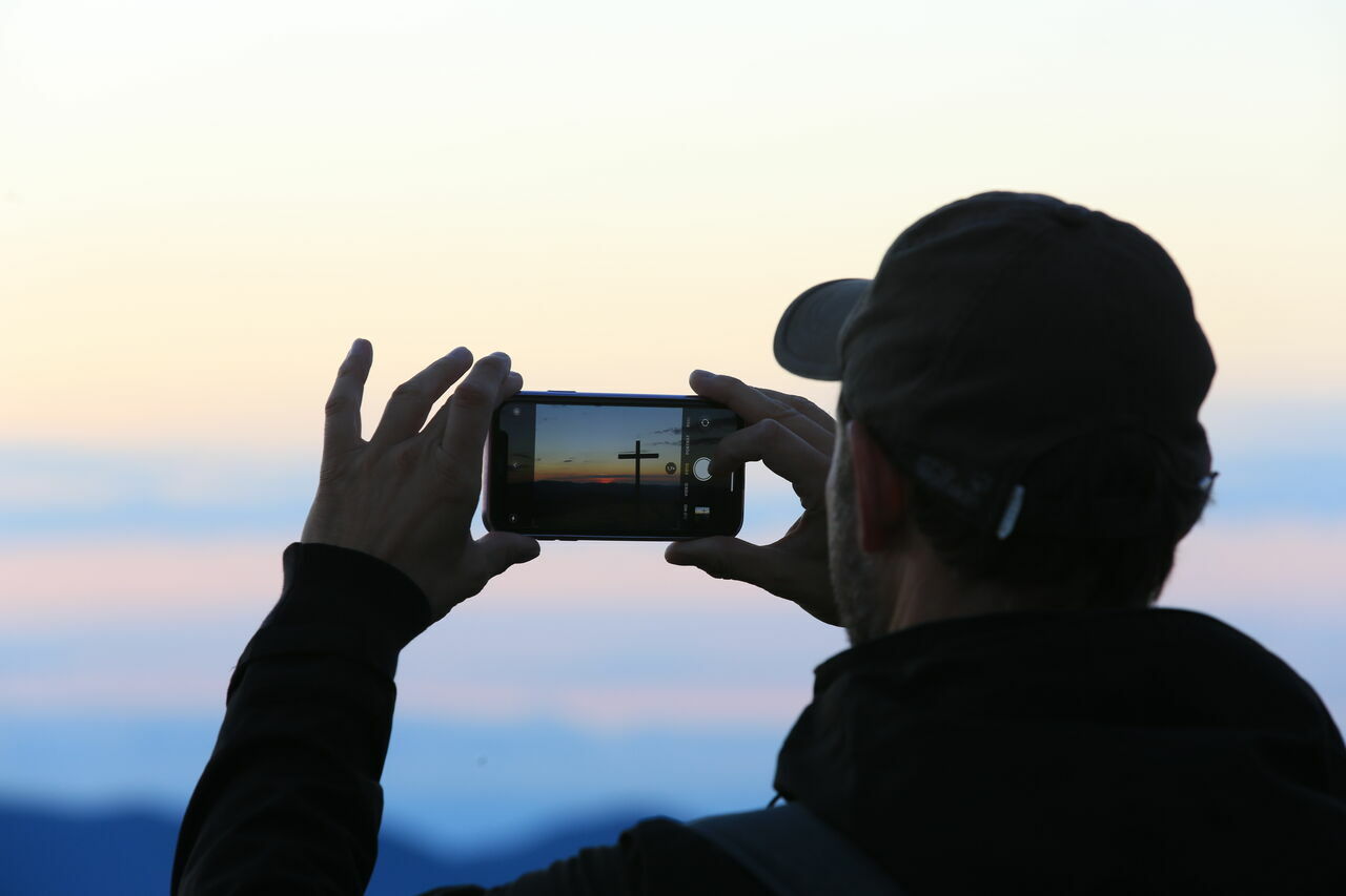 Zum Abschluss unserer Tour steht für alldiejenigen, die noch einmal prägende Eindrücke und Erinnerungen sammeln, gedanklich abspeichern und von diesen noch lange zehren wollen, ein ganz besonderes Erlebnis an: die Tour zum Sonnenaufgang auf dem Belchen (7,0 Km, 384 aufsteigende Höhenmeter, 394 absteigende Höhenmeter). Dazu müssen wir früh aufstehen, denn wir sollten rund zwei Stunden vor dem eigentlichen Sonnenaufgang von der Dießlin-Hütte aufbrechen und uns auf den Weg in Richtung Belchengipfel machen. Hierzu recherchieren wir im Internet die genaue Uhrzeit für den Sonnenaufgang. Zwar planen wir nur rund eine Stunde Fußweg bis zum Gipfel ein, doch die Stunde vor dem eigentlichen Sonnenaufgang ist die schönste, wenn sich der Himmel orange-rötlich verfärbt und die in der Ferne deutlich zu erkennende Alpenkette im Morgenlicht angeschienen wird.
