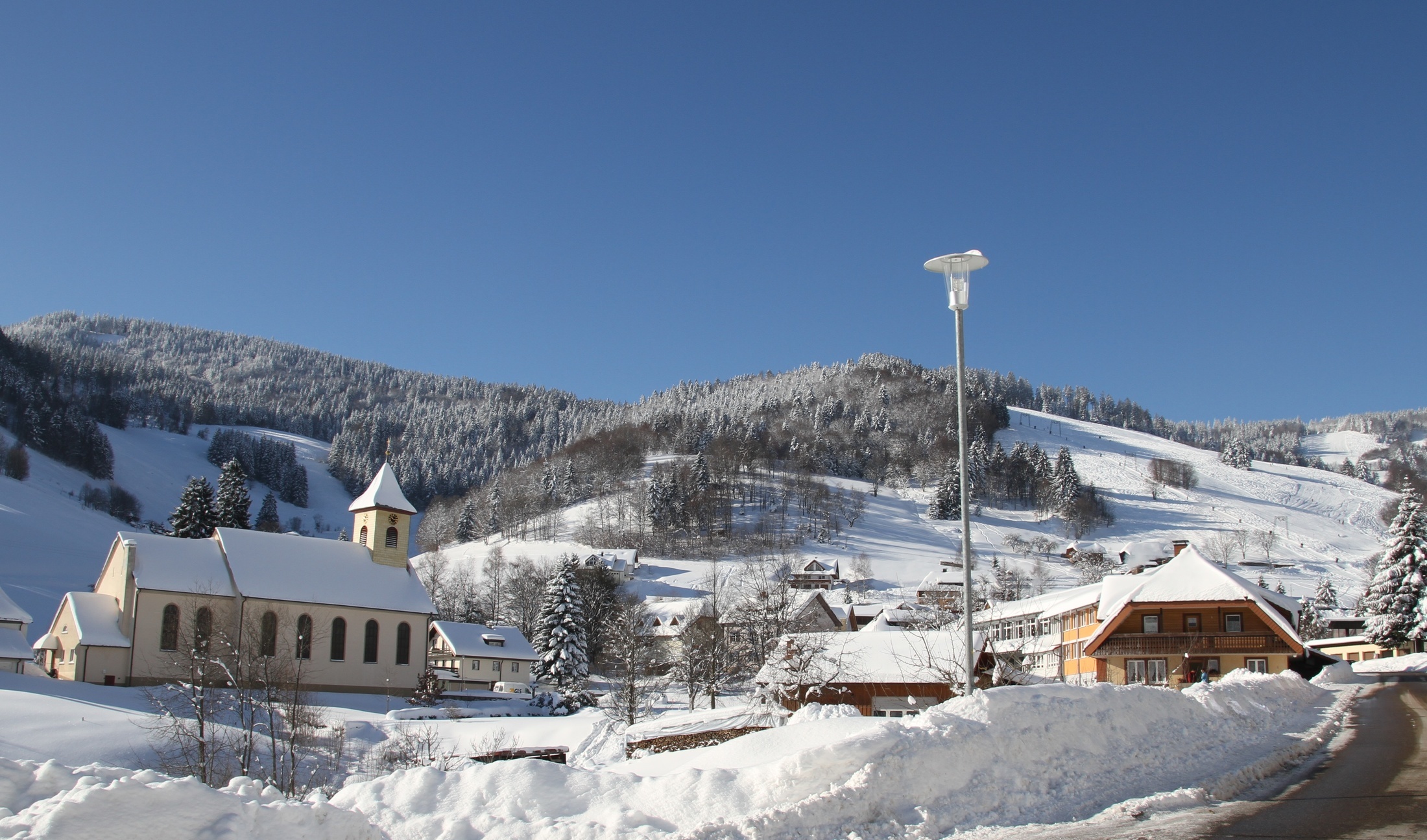 Schönau im Schwarzwald (517 - 1.309 m)Der Ortskern des kleinen Landstädtchens Schönau im Schwarzwald befindet sich auf etwa 550 Meter. Während die offizielle Gemerkungsgrenze bis auf 1.309 Meter in Richtung des Belchens hinauf geht, befinden sich die höher gelegenen Stadtteile auf einer Höhenlage von maximal 620 Meter. In Schönau selbst finden sie gebahnte Winterwanderwege vor, die zum Spazierengehen einladen. Sofern es die Schneelage ermöglicht, lädt die Mühlmattloipe, nur wenige Schritte vom Ortszentrum entfernt, zum Langlaufen ein. An mehreren aufeinanderfolgenden, besonderes kalten Wintertagen kann im Buchenbrand sogar ein Eislaufplatz errichtet werden. In der Tourist-Information Schönau können Sie Schneeschuhe und Schlitten ausleihen, während auf dem Campingplatz auch Wintercamping möglich ist. Von Schönau aus fahren mehrmals am Tage Busse an den Belchen und in das Skigebiet Münstertal-Wieden (Linie 7306) sowie zum Feldberg (Linie 7300).
